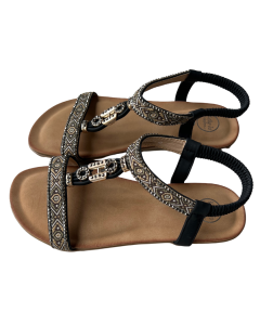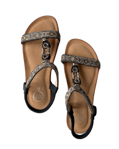 • Kleur: zwarte  sandaal met uitgewerkte riempje met kraaltjes