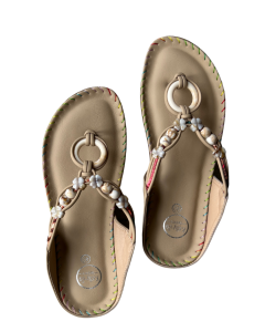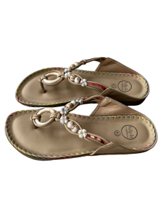 - Kleur: beige sandaal met uitgewerkte riempje met kraaltjes